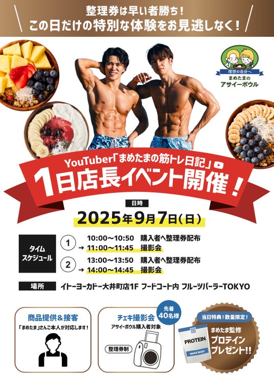 【販売予定期間】2025年8月23日(土)~9月28日(日)※9月7日(日)には人気YouTuber「まめたまの筋トレ日記」の1日店長のイベント開催予定!
