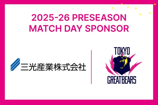 このたび、2025年10月1日(水)・2日(木)・9日(木)に国立代々木競技場第二体育館にて、東京グレートベアーズオフィシャルパートナーで、特殊印刷におけるリーディングカンパニーの三光産業株式会社様がマッチデースポンサーを務める、「三光産業 presents 東京グレートベアーズ 2025-26プレシーズンマッチ」を開催することとなりましたので、お知らせいたします。