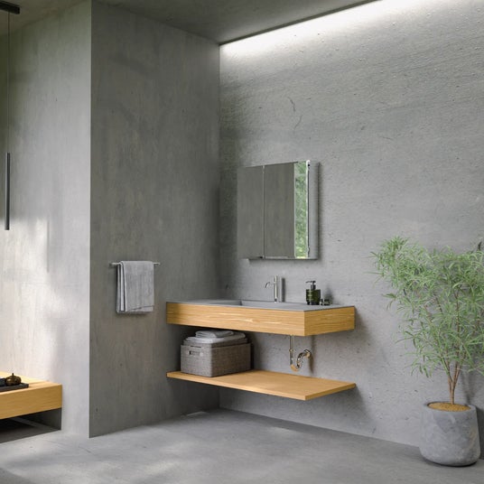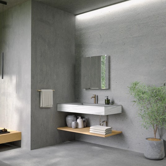 最小限の構成で、最大限の美しさを。端正なラインが空間をすっきりと引き締める、洗練された壁付けスタイルです。