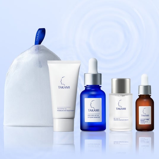 タカミで目指す、内側から潤いが巡り、触れるたびに感じるなめらかなツヤ肌を体験できる限定キット。ロングセラーで多くの方に愛される「タカミスキンピール30mL」を中心に、10月1日(水)発売する新ローションをいち早くお試しいただけるほか、人気のビタミンC美容液・洗顔フォームのミニサイズがついたタカミの角質美容をライン使いで実感できるオープン記念限定キットです。タカミエッセンシャルキット