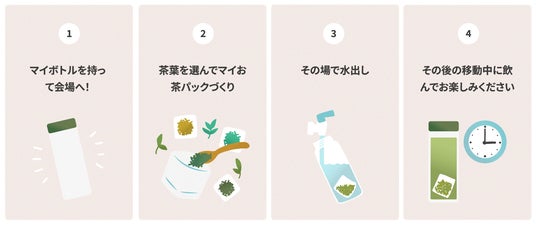その場で「マイお茶パック」を作り、マイボトルに入れて水出し。自分好みの味を探すきっかけになります。