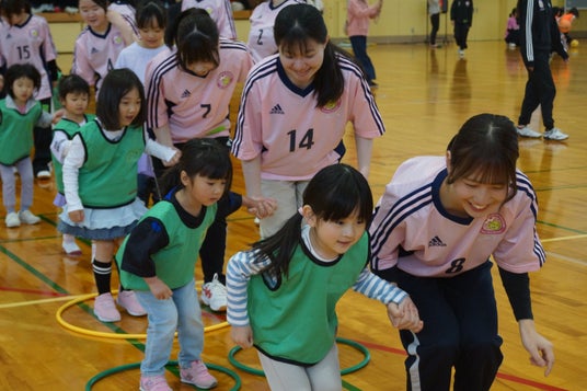 島根県立大学松江キャンパスでは、「運動好きな子どもと、運動指導の得意な学生を増やし、地域に貢献したい」との思いから2023年10月より月1回のペースで"笑顔とハイタッチ"をキャッチフレーズとした「JFAなでしこひろば」を開催しています。(このイベントは無料で開催しています)