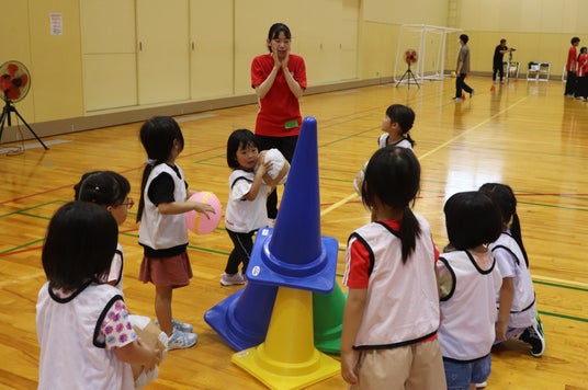 指導を担当する学生たちは、保育士や幼稚園教諭、小学校教諭を目指しており、授業で学んだ理論や実践を通じて、子どもと一緒に運動あそびを行います。また、今回はミニオープンキャンパスも同時開催し、高校生も指導体験を通じて、運動指導を学ぶことができます。