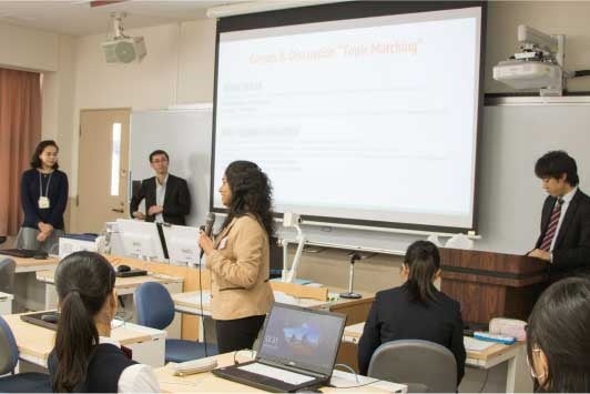 世界共通の問題の解決策を提案すべく、民間企業・海外・日本の学生が協働し、調査・対話・提案を行う本プログラム。文化や言語の壁を越えて議論を重ねる中で、課題の本質に迫る対話力、合意形成のプロセス、そして相手の視点に立った表現力を養う貴重な経験が積み重ねられています。