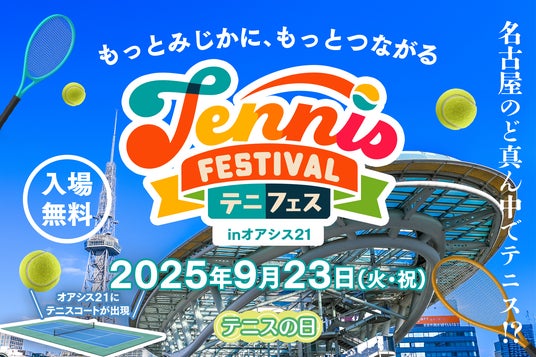 日本最大級のテニススクールを運用する株式会社テニスラウンジ(所在地:愛知県名古屋市)は2025年9月23日(火・祝)、名古屋のランドマーク「オアシス21」にて、誰もがテニスを楽しめる大型イベント「テニフェス in オアシス21」を開催いたします。本イベントは、全国で活躍するトップ選手を輩出し、ますます注目が高まる愛知のテニス熱をさらに盛り上げることを目的とし、子どもから大人まで幅広い世代が“観て・触れて・体験できる”一日限りのテニスフェスティバルです。