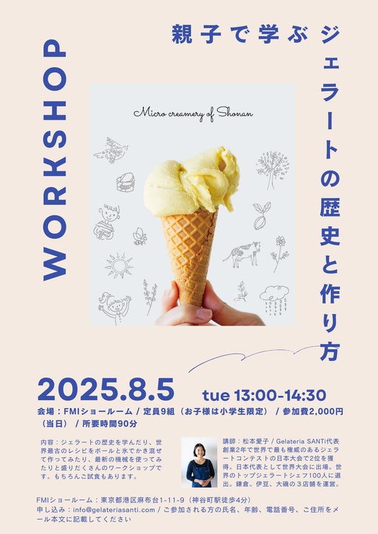 株式会社エフ・エム・アイ(本社:東京都港区、代表取締役社長:浮穴浩司)は、クラフトジェラートの名店「Gelateria SANTi(サンティ)」と協力し、親子で参加するジェラートワークショップを開催しました。FMIが継続して取り組んでいる“食と文化を未来に継承する”活動の一環として、本イベントは第3回目の開催となります。
