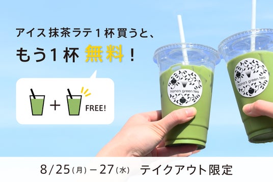 日本茶・抹茶をテーマにしたカフェブランド「nana’s green tea」を運営する株式会社 七葉(本社:東京都目黒区、代表取締役 朽網一人)は、2025年8月25日(月)~27日(水)の3日間限定で、全国のnana’s green teaにて、テイクアウト限定「アイス抹茶ラテ(M)] 1杯買うともう1杯無料」キャンペーンを実施します。※在庫状況により、売り切れの際はご容赦ください。