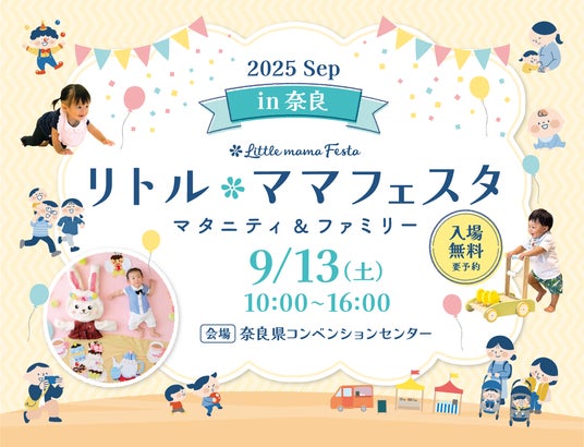 国内最大級のファミリーイベントを主催する株式会社エンファム.は、2025年9月13日(土)、奈良県コンベンションセンター ホールB・Cにて【リトル・ママフェスタ 奈良2025Sep】を開催いたします。全国の主要都市で多くの親子に愛されてきた本イベントは、奈良でも毎回多くのご家族にご来場いただいています。今回も、お子さまの成長を感じられるキッズレースや、記念に残るおひるねアート撮影会、親子で学べる講座など、安心してご参加いただける内容を揃えました。入場は無料(完全予約制)。混雑を避けた予約制運営や会場内の安全対策も整えておりますので、小さなお子さま連れでも安心してご来場いただけます。ご家族で、ゆったりと笑顔のひとときをお過ごしください。
