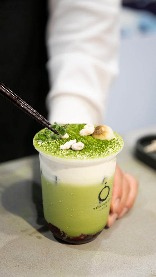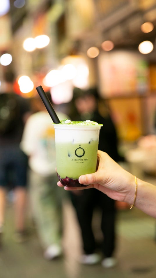 見た目はスイーツ。なのに、だしのうまみが広がる『だしペチーノ』や枯山水の美をカップの上に表現した『禅庭抹茶ラテ』が楽しめる新感覚ドリンクスタンドが京都・錦市場に登場