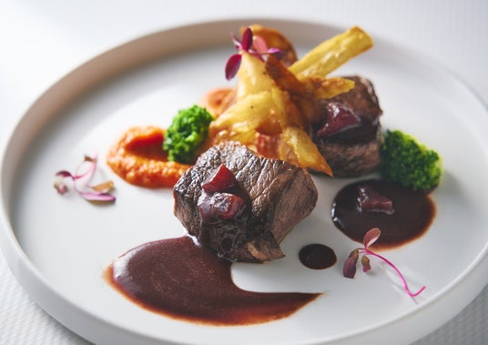 ランチのシェフパフォーマンスコーナーでは、9月は鹿児島県産の桜島鶏、10月は神戸プレミアムポーク、11月は蝦夷鹿を料理長 牧原秀樹がフレンチ仕立てで創作した特別な一品をご用意します。ディナーは熊本県産の味彩(あじさい)牛をステーキで用意し、牧原がブレンドした赤ワイン塩をはじめとした香味とともにお召し上がりいただきます。