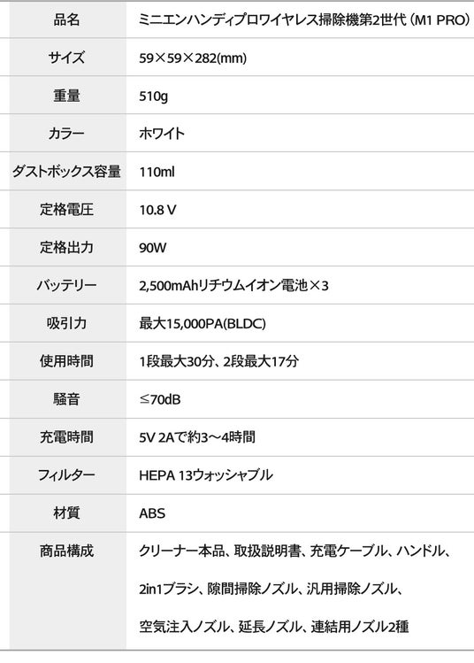 強力なBLDCモーターと内部吸引構造により小型でも強力な吸引力を実現しています。