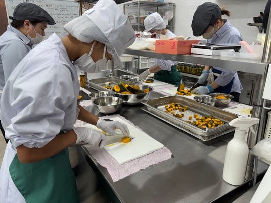 地産地消商品開発 授業風景1. 東松山ふぉれでの製造実習