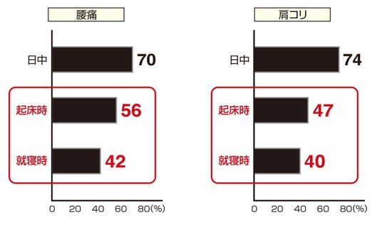 - 腰痛や肩こりの症状がある方の約4~5割以上が、就寝・起床時にも症状を抱えている*¹*²- 腰痛や肩こりへの対処法として、就寝時中に使える温熱シートを開発
