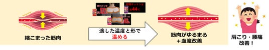 縮こまった筋肉を温めて緩める“温熱”に着目腰痛や肩こりなどの慢性的な痛みは、縮こまった筋肉が原因の一つです。