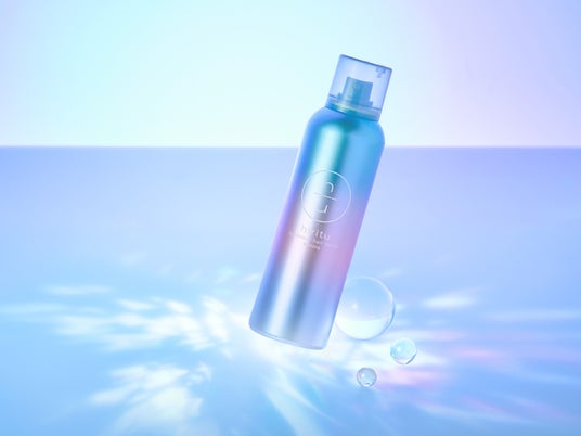 シューッとひと吹きするだけでオーロラのヴェールをまとい美しいツヤ髪を生成。