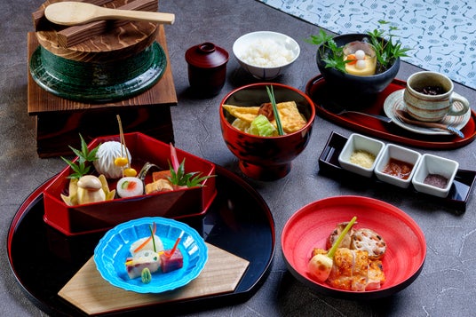 コンセプトは「和食新世~富士山麓が育む季節ごとの旬の恵みを贅沢に~」。本格的な炭火で甲州ワインビーフや甲州牛をご堪能いただくことはもちろん、駿河湾より直送されるその日の鮮魚や提携農場の高原野菜など、自然豊かな富士山麓エリアならではの食材や、山梨のフルーツなどにもフォーカスし、和食でありながらも新たな調理法や組み合わせなどで、記憶と共に心に残る懐石料理をご提供いたします。一連の料理とともに、ソムリエが厳選する地酒や各種ワインとのペアリングもお楽しみください。