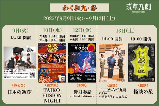 株式会社レプロエンタテインメントが運営する浅草九劇は、和物企画の第3弾となる『わく和九・参』を2025年9月9日(火)から9月13日(日)までの期間、上演いたします。