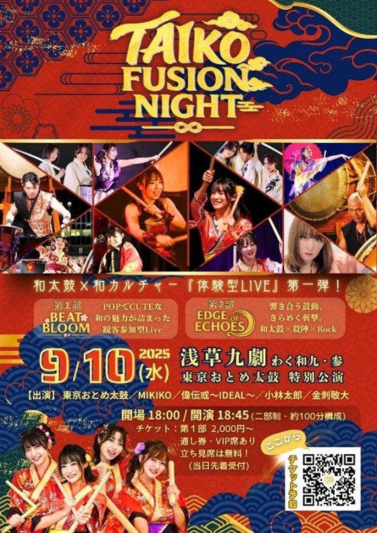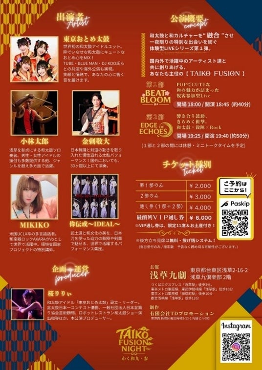 ブルーマンやTUBEとの共演、海外公演の実績を持ち、“カワイイ×和文化”を世界に響かせています。