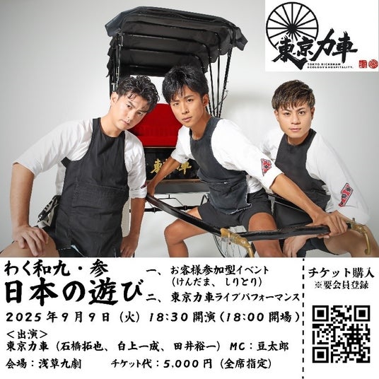 さらに新たな試みとして、東京力車が日本の伝統的な遊びをお届けする参加型公演、そしておばけ座による怪談公演も加わります。「日本の遊び」公演は、本日8月21日(木)よりチケット発売を開始します。より一層多彩な「和」の魅力をご堪能いただける、期待の企画となっております。