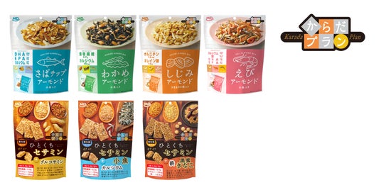 『からだプラン』は、“手軽に美味しく栄養を補える、罪悪感のないお菓子”をコンセプトに展開している当社のお菓子です。『海鮮ミックス』『セサミン』の2種類のシリーズで構成されています。