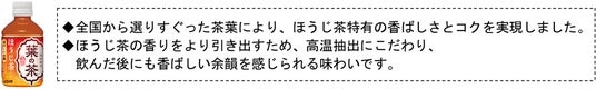また、両商品ともに、葉の茶シリーズの持つ上質感と本格感を表現するとともに、風味の特長である「香ばしい余韻」を感じられるパッケージデザインとしました。