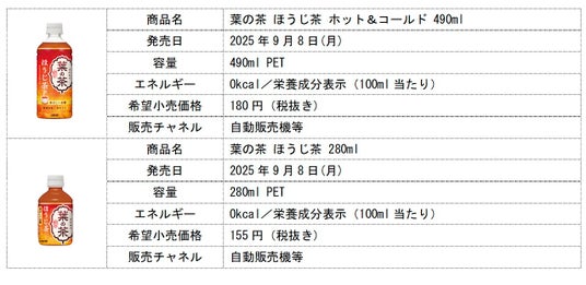 ダイドードリンコ株式会社(本社:大阪市北区、代表取締役社長:中島 孝徳)は、2025年秋冬の新商品として、「葉の茶 ほうじ茶 ホット&コールド 490ml」「葉の茶 ほうじ茶 280ml」を9月8日(月)より発売いたします。