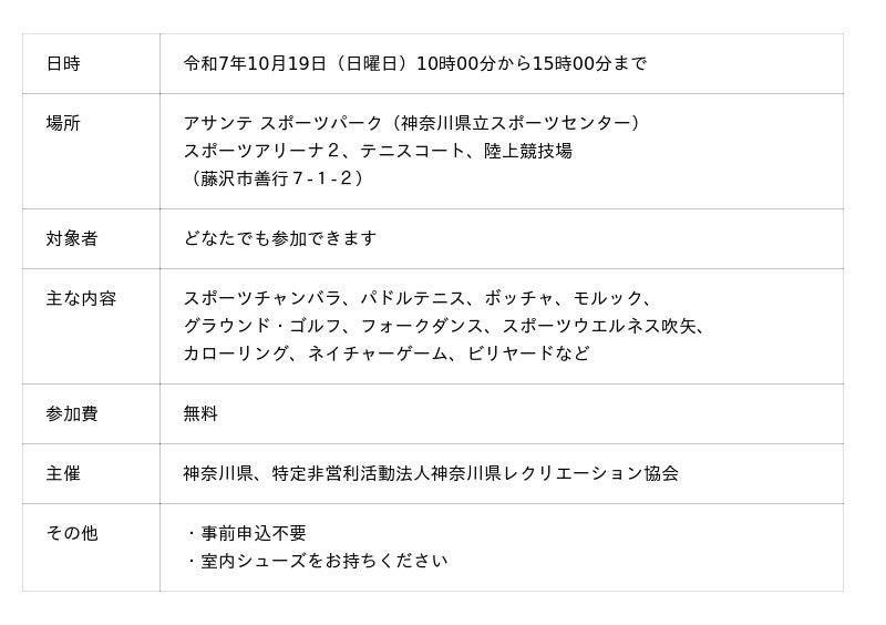 【県民スポーツ月間、かながわみんなのスポーツフェスティバル、かながわレクリエーション大会2025について】