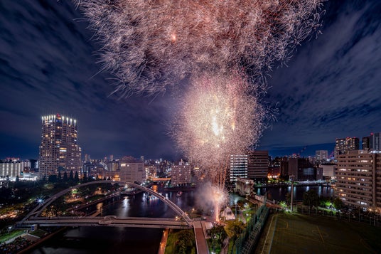 「しながわ秋の花火運河まつり」は、約8,000発の花火が上がる品川・天王洲の秋の風物詩。次々とあがる花火が高層ビルとともに夜空を彩り、光の軌跡が水面に映りこむ……この夜景は、この立地だからこそ見られるもの。昼間は「しながわ運河まつり」として出店や地域の企画、大道芸など、コンテンツも盛りだくさん。花火はもちろん、一日を通して楽しめます。地域の人々が主体となって運営を続けてきた、まさに地元による地元のための祭り。一年を通して祭りに溢れる品川らしい、地域住民みんなが毎年楽しみにしている、華やかで大規模、でも温かみのある花火大会です。