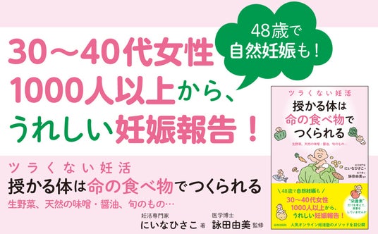 青春出版社(東京都・新宿区)は『ツラくない妊活 授かる体は“命の食べ物”でつくられる』(にいなひさこ/著、詠田由美/監修)を8月22日に発売いたしました。
