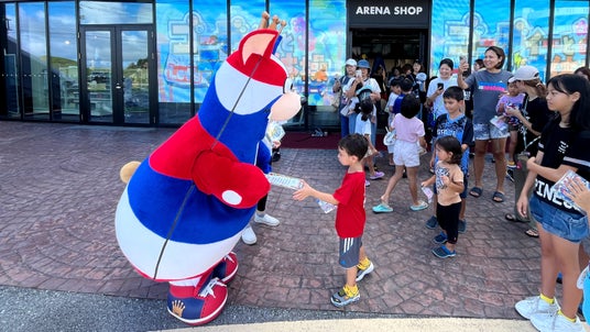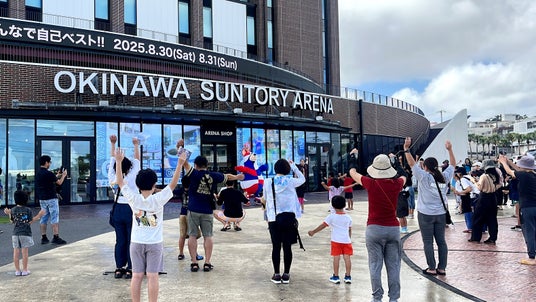 「おおきなわ」の活動の一環として、地域の皆さまとの交流を目的とした夏休みの特別企画の第一弾「ゴーディーとLet’sラジオ体操 in 沖縄サントリーアリーナ」が全12回にわたり実施されました。