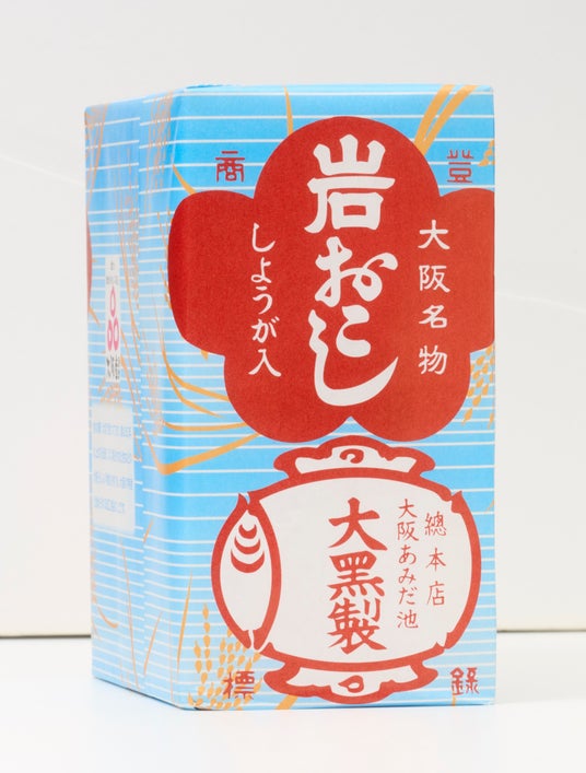 大阪名物の米やごまなどの原材料をみっちりと固めた板状のおこし。生姜の辛さがアクセント。