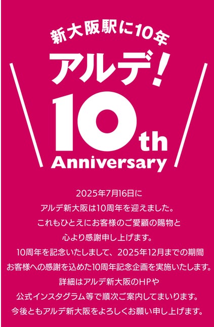 話題性の高いお店がかわるがわる出店するアルデひろばの新ネタを中心に、アルデ新大阪のイベント情報等についてお知らせいたします!