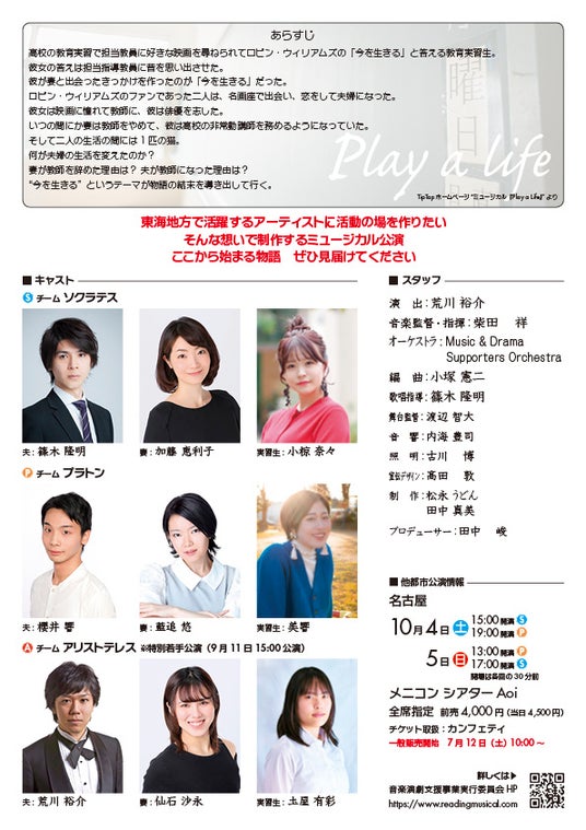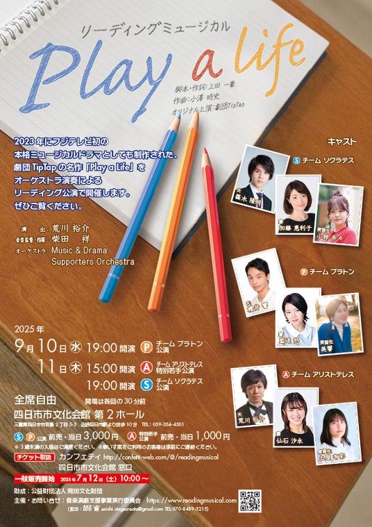 リーディングミュージカル 「Play a Life」【四日市公演】開催期間:2025年9月10日 (水) ~ 2025年9月11日 (木)