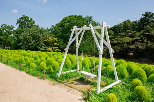 国営昭和記念公園(東京都立川市・昭島市)では、緑色に輝くコキアが見頃を迎えています。「ハーブの丘」でご覧いただけるコキアは、丸くふわふわとした愛らしい姿が特徴で、盛夏ならではの生き生きとした緑あふれる風景を楽しめます。フォトスポットとしてブランコも設置されており、オシャレな写真撮影にもぴったりです。