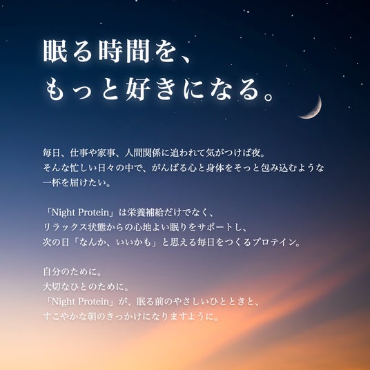 『Night Protein』は、睡眠前に飲むことを推奨した新しいスタイルのプロテイン。