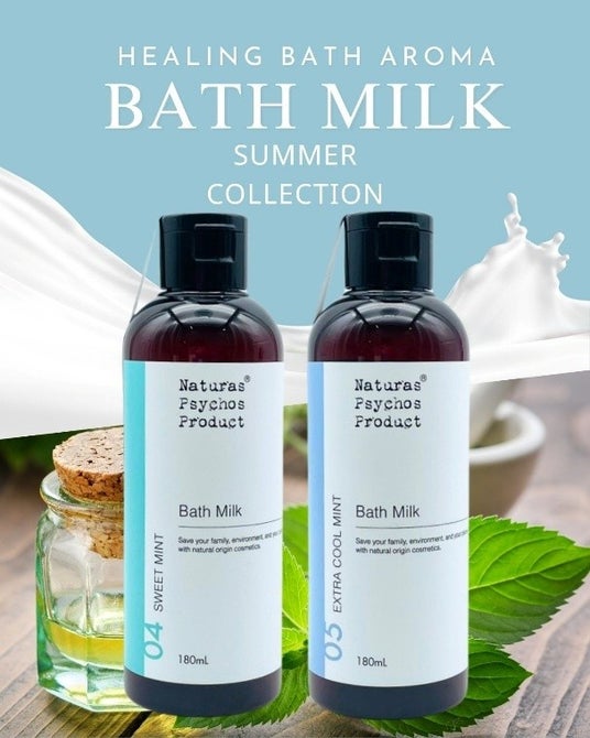 株式会社光南 ハーバルインデックスカンパニー(本社:愛知県西尾市、カンパニーCEO:肆矢 崇博)は、天然精油、ナチュラル・オーガニックスキンケアブランド<Naturas Psychos Product(ナチュラスサイコス)>より、自然由来の成分と厳選されたエッセンシャルオイルが織りなす香りとケアで、忙しい現代人の肌と心にたっぷりの潤いを届けるために生まれた「Healing BATH AROMA(ヒーリングバスアロマ)」シリーズから、限定生産のバスミルク〈04 SWEET MINT〉〈05 EXTRA COOL MINT〉を発売致しました。