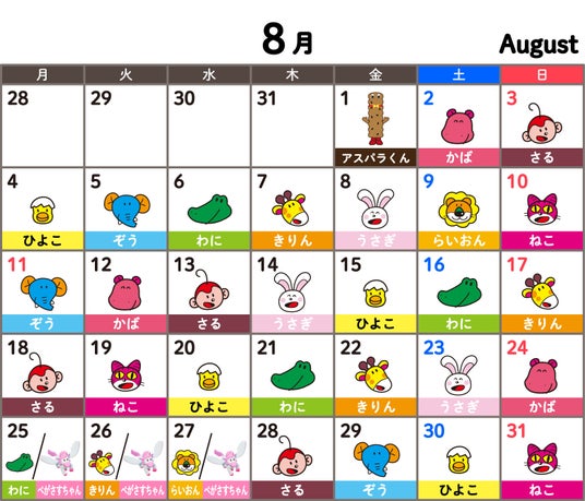 ※2ショット撮影には、8月25日(月)わにさん、8月26日(火)きりんさん、8月27日(水)らいおんくんのみが登場いたします。