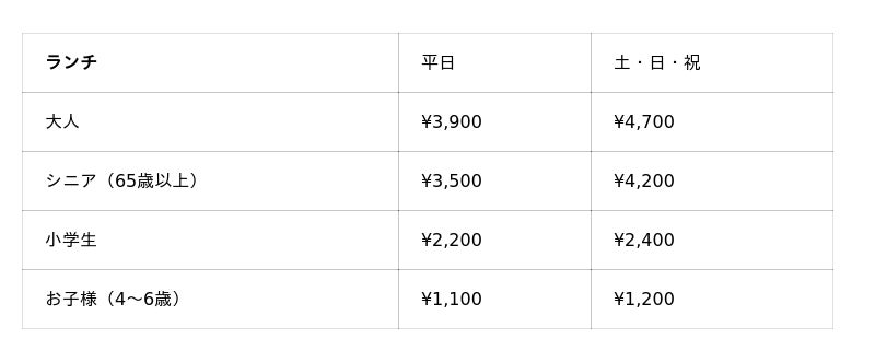 *ご予約は11:30a.m.入店/12:00p.m.入店にて承ります。