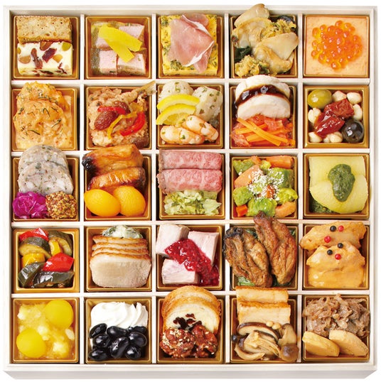 2019年大丸・松坂屋のおせちにて新たなジャンルのおせちとして「おつまみおせち」や「お肉おせち」提供開始。25マスのお料理がオードブル形式で飽きずに楽しめるおつまみおせちは、お酒とのペアリングを昨年より提供開始。今年は、おせちを若い世代の方々にもお召し上がりいただきたいという想いからSNSで話題沸騰のインフルエンサーを起用いたします。多彩なおせちをご堪能ください。