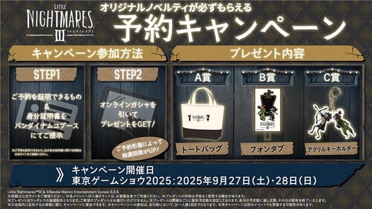 『リトルナイトメア3』の対象商品をご予約いただいた方限定で、オリジナルグッズがもらえるキャンペーンを会場で実施いたします。