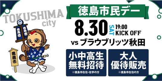 8月30日(土)ブラウブリッツ秋田戦は「徳島市民デー」として開催されます。