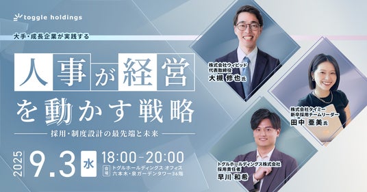 大手・成長企業が実践する「人事が経営を動かす」戦略 ~採用・制度設計の最先端と未来~と題し、人事を起点とした各社の経営戦略について、ざっくばらんにパネルディスカッションするイベントが開催されることとなりました。後半にはネットワーキングイベントもございますので、ぜひ奮ってご参加ください。