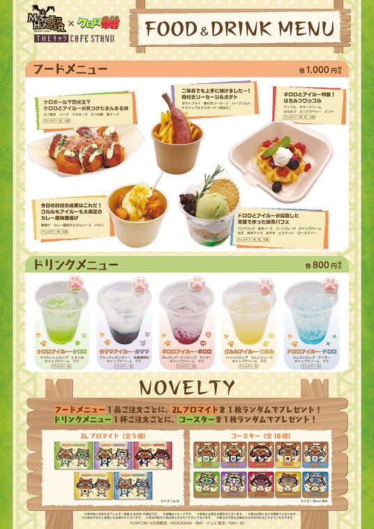 東京ドームシティ<THEキャラ CAFE STAND>では、グランドメニューに加えモンスターハンター×ケロロ軍曹の期間限定オリジナルメニューをご用意して皆様のご来店をお待ちしております。
