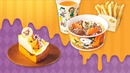 その他にも「チェンソーマン」、スヌーピーなどハロウィーン期間限定のフードを楽しめます。この秋のスヌーピーは、サーカスコスチューム姿の限定デザインに!Tシャツとカチューシャや、ぬいぐるみキーチェーンなどを販売します。さらに「チェンソーマン」のバックプリントがポイントのTシャツとポップコーンバケツをかぶったポチタのカチューシャや見た目と味のギャップが楽しいフードなどこの時期だけの限定フード&グッズにぜひご注目ください。