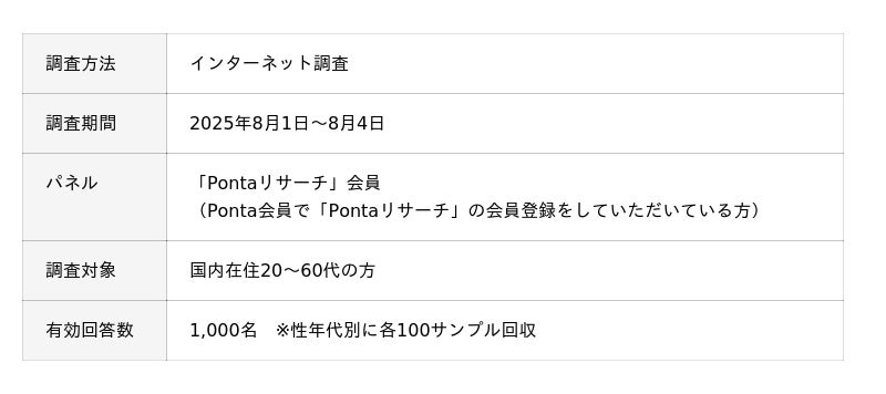 共通ポイントサービス「Ponta(ポンタ)」を運営する株式会社ロイヤリティ マーケティング(本社:東京都渋谷区、代表取締役社長:勝 文彦、以下「LM」)は、20~60代の方を対象に調査した「酷暑による今夏の生活スタイル変化に関する調査」(実施期間:2025年8月1日~8月4日)の結果をご報告いたします。本調査は、TOKYO FM「馬渕・渡辺の#ビジトピ」(毎週日曜6:00~7:00放送)との共同調査「馬渕・渡辺の#ビジトピ with Pontaリサーチ」として実施しました。