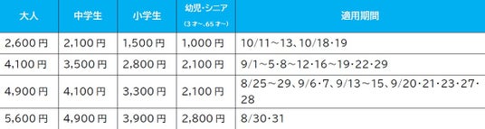 詳しくは公式 HP でご確認ください。(https://www.summerland.co.jp/price/)