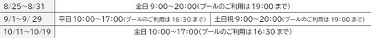 ※屋外プールの営業は9月29日(月)まで 10月11日(土)~19日(日)は屋内プール+遊園地のみ の営業