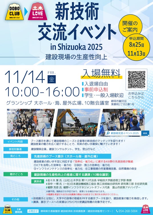 【静岡県】建設産業の魅力を紹介。『新技術交流イベント in Shizuoka 2025』一般参加者募集を開始します。