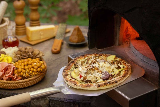 甲州味噌のソースとキノコをのせ、屋外のピザ窯で焼き上げる「森の石窯ピザづくり」