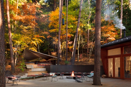 秋風の中で、焚き火を楽しめる「クラウドテラス」